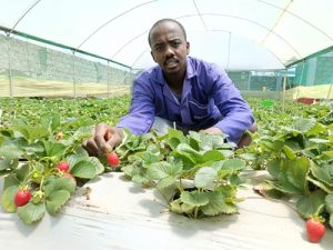 Kijana Ngatia hulima stroberi aina ya San Andreas, inayojulikana kwa uzalishaji wa mwaka mzima na matunda yenye ladha tamu na ubora wa juu—hali inayomuwezesha kuvutia wateja wa masoko ya hadhi ya juu.
