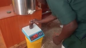 Asali hupimwa, kupashwa joto zaidi ya nyuzijoto 50°C, kuongezwa thamani na kupakiwa.
